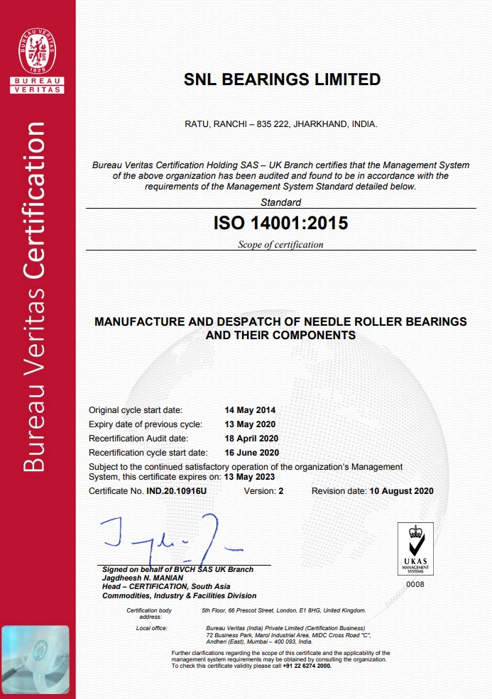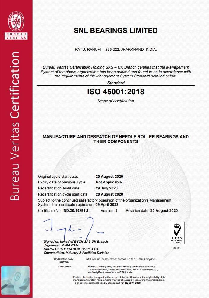 SNL Bearings is certified with the following certifications